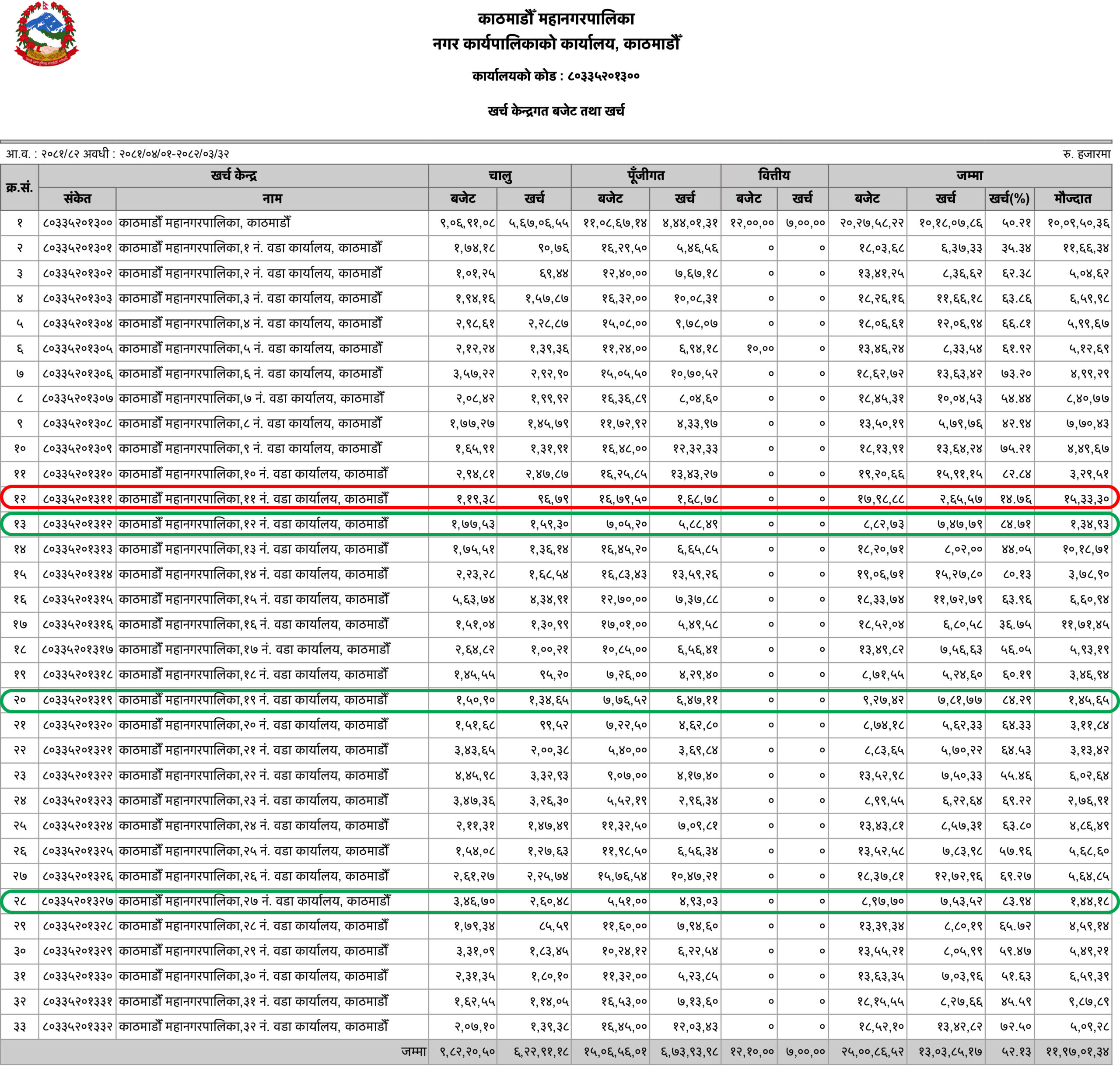 सबैभन्दा बढी बजेट खर्च गर्ने वडाहरु १२, १९ र २७