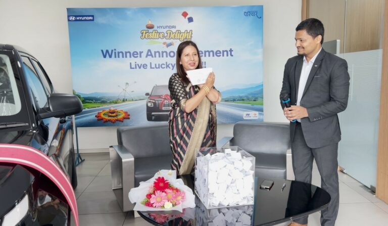 काठमाडौं । लक्ष्मी इन्टरकन्टिनेन्टल नेपालका लागि हुन्डाई गाडीको आधिकारिक वितरकले, हुन्डाई ‘फेस्टिभ डिलाइट २०८१’बम्परअफरको विजेता आधिकारिक रूपमा घोषणा गरेको छ । यस अफरको महापुरस्कार, हुन्डाई भेन्यु १.२, कुबेर कन्स्ट्रक्सन प्रालिलाई प्रदान गरिएको छ ।