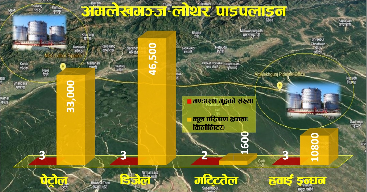 भारतको मोतिहारीबाट बाराको अमलेखगञ्जमा आइपुगेको पाइपलाइन स्टेशनबाट पाइपलाइन जोडेर चितवनको लोथरसम्म पुर्याइनेछ । लोथरमा ९१ हजार ९ सय किलोलिटर क्षमताको भण्डारण गृह निर्माण हुनेछ ।