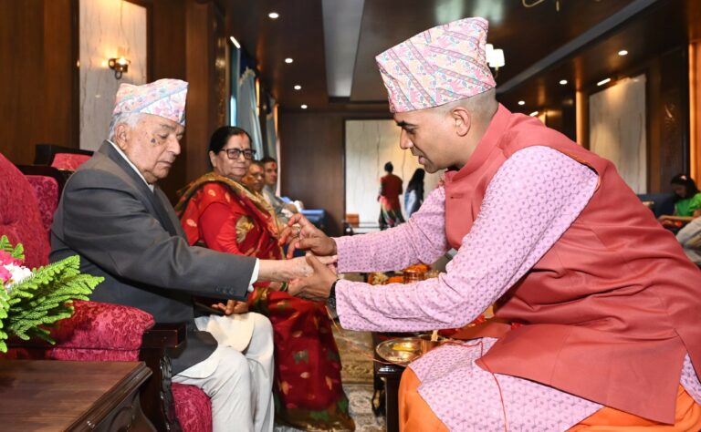 राष्ट्रपति पौडेलसहित प्रथम महिला सविता पौडेलले पण्डित अर्जुन न्यौपानेबाट आज निर्धारित साइतअनुसार वैदिक रक्षाबन्धन ग्रहण गर्नुभएको राष्ट्रपतिको सचिवालयले जनाएको छ । राष्ट्रपति भवन शीतल निवासमा राष्ट्रपति पौडेलसँगै आफन्तजनले रक्षाबन्धन ग्रहण गरेका हुन् ।