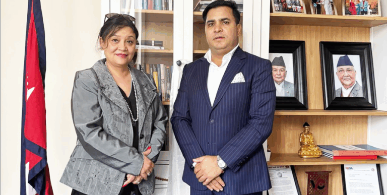 काठमाडौं । सिटी एक्सप्रेस मनि ट्रान्सफरका संस्थापक, ग्लोबल बिजिनेस तथा डायस्पोरा समितिका सभापति, तथा नेपालका लागि केन्याका अवैतनिक वाणिज्यदूत चन्द्र टण्डन र डेन्मार्कस्थित नेपाली राजदूत सुम्निमा तुलाधरबीच भेटवार्ता भएको छ ।