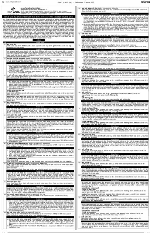 काठमाडौं । एनआईसी एशिया बैंकले १०६ व्यक्ति तथा संस्थाले धितोमा राखेको चल अचल सम्पत्ति लिलाम मार्फत बिक्री गर्ने भएको छ । बैंकले बुधबार एक सूचना प्रकाशित गर्दै धितोमा राखेको चल अचल सम्पत्ती लिलाम मार्फत बिक्रीकालागि बोलपत्र आह्वान गरेको छ ।