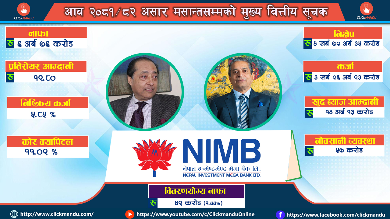 ३४ अर्ब १२ करोड ८६ लाख रुपैयाँ चुक्तापुँजी रहेको बैंकको नाफा बढेसँगै प्रतिसेयर आम्दानी १२ रुपैयाँ ४ पैसाबाट बढेर १९ रुपैयाँ ८० पैसा पुगेको छ । त्यस्तै बैंकको प्रतिसेयर नेटवर्थ १९७ रुपैयाँ र मूल्य आम्दानी अनुपात ११.६७ गुणा छ । बैंकको सञ्चित कोष सकारात्मक भएको छ भने जगेडाकोषमा ३२ अर्ब ७४ करोड १७ लाख रुपैयाँ छ ।