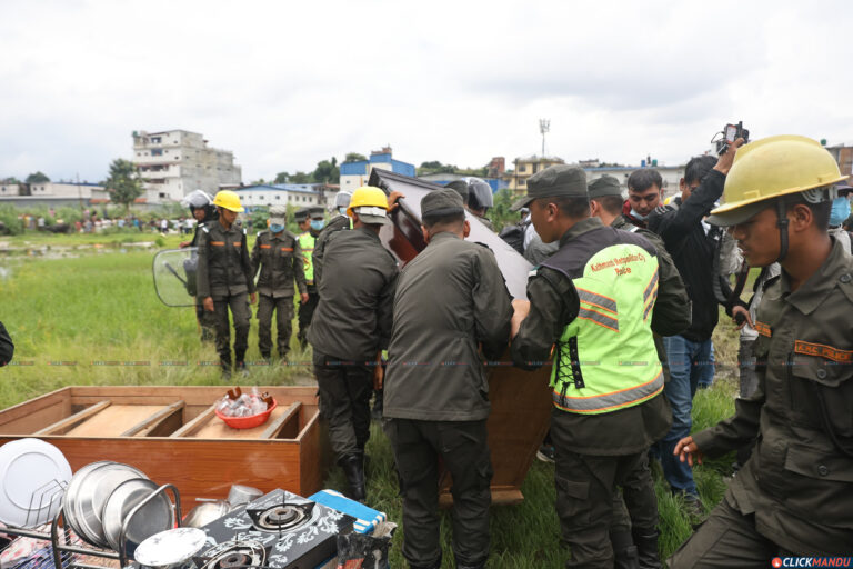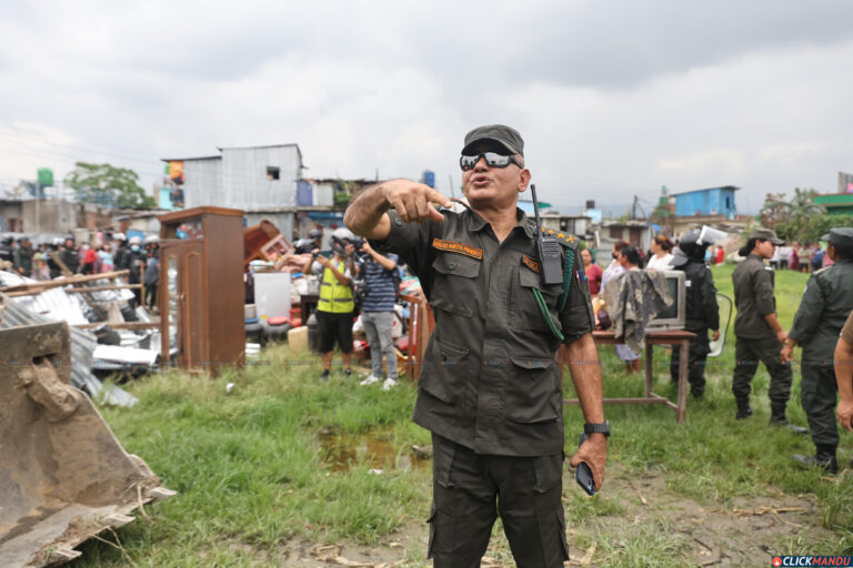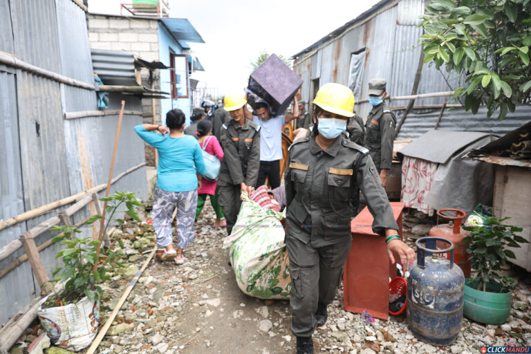 टहराहरु भत्काउन काठमाडौं महानगरपालिकाको नगरप्रहरी प्रमुख राजु पाण्डेसहितको टोली पुगेको छ ।