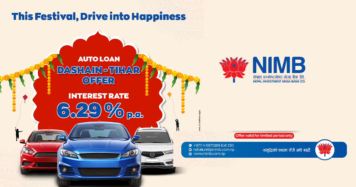 आगामी दसैं, तिहार तथा छठ पर्वलाई लक्षित गर्दै ल्याइएको यस योजनाले चाडपर्वको उत्सवमा नयाँ गाडीको सपना पुरा गर्न चाहने ग्राहकवर्गहरुलाई थप सहजता हुने बैंकले अपेक्षा गरेको छ ।