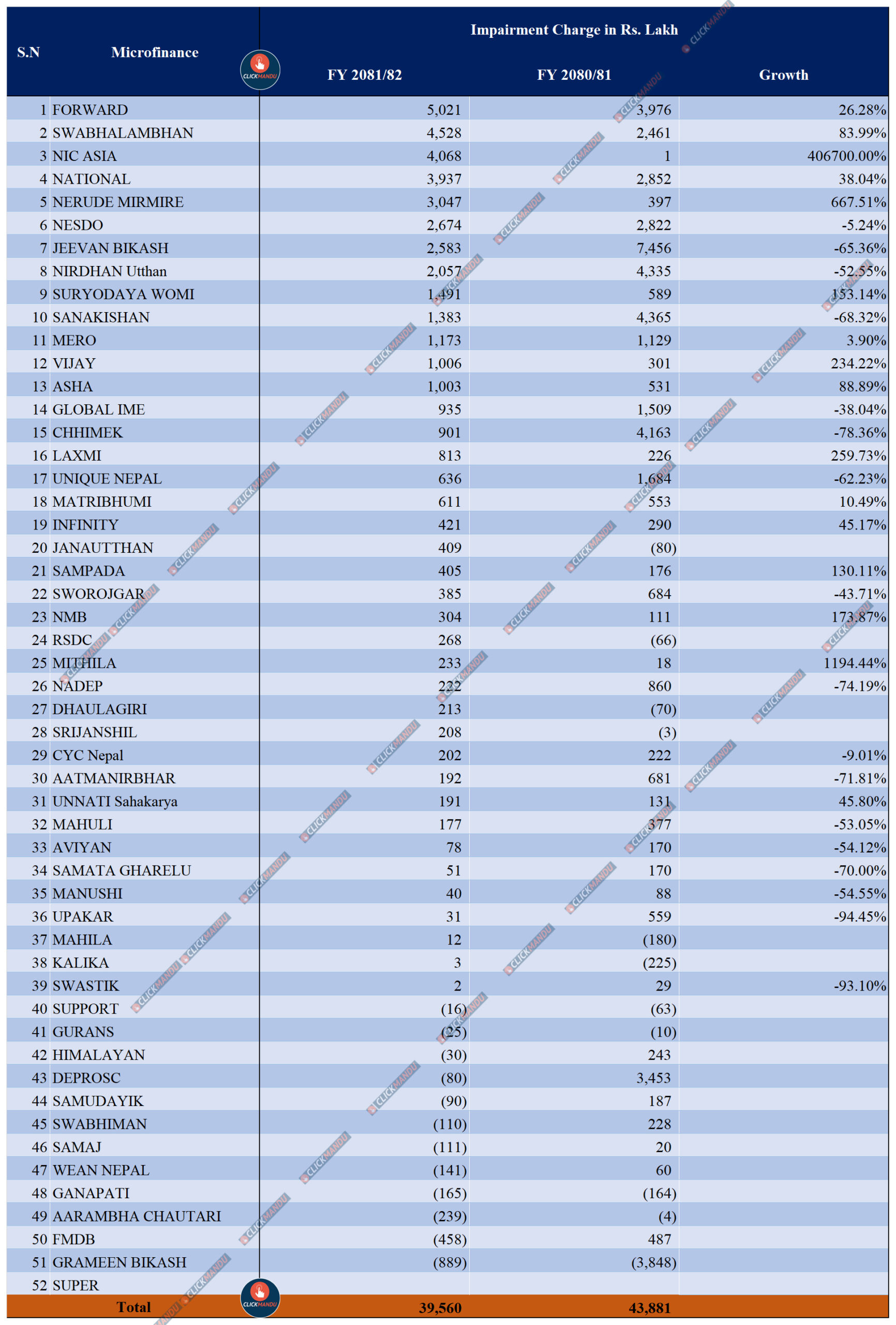 यस्तै, राष्ट्र बैंकले कर्जा पुनरसंरचना/पुनरतालिकिकरणको सुविधा दिएको कारण कर्जा नोक्सानी व्यवस्थाका लागि छुट्याएको रकम पनि अघिल्लो आर्थिक वर्षको तुलनामा घटेको छ । जसले गर्दा लघुवित्तहरूको नाफा उल्लेख्य रुपमा बढेको हो ।