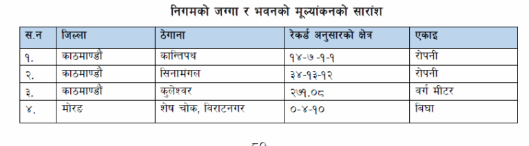 कति छ निगमको देशैभर जग्गाजमिन ?