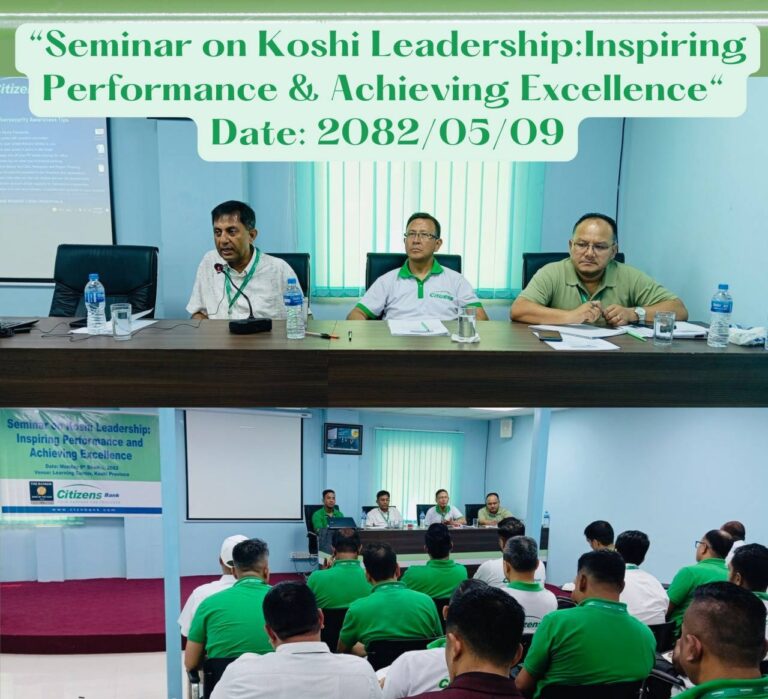 काठमाडौं । सिटिजन्स बैंक इन्टरनेसनल लिमिटेडले कोशी प्रदेशमा आफ्ना प्रदेश प्रमुख, क्लस्टरहेड, शाखा–प्रबन्धक तथा अन्य सहकर्मीहरू माझ ‘सेमिनार अन् कोशी लिडरसिप्: इन्स्पाएरिङ पर्फरमेन्स एण्ड अचिभिङ एक्शिलेन्स’ कार्यक्रम आयोजना गरेको छ ।