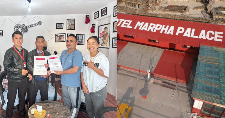 एक समारोहका बीच मार्फा प्यालेस होटलका सञ्चालक केशव रिजाल र प्रभु बैंकको तर्फबाट जोमसोम क्लस्टर प्रमुख तथा जोमसोम शाखाका शाखा प्रबन्धक नरेन्द्र थकालीले समझदारीपत्रमा हस्ताक्षर गरे ।