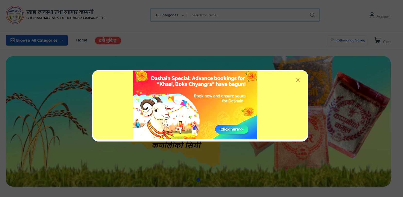 त्यसपछि पेजको माथि पहेलो रंगमा ‘दशैं स्पेशल एडभान्स बुकिङ’ भन्ने फिचर आउँछ र त्यो फिचरमा क्लिक हेयरमा क्लिक गरेपछि खसीबोका खरिद गर्न अग्रिम बुकिङ गर्न पाउने सुविधा दिइएको छ ।