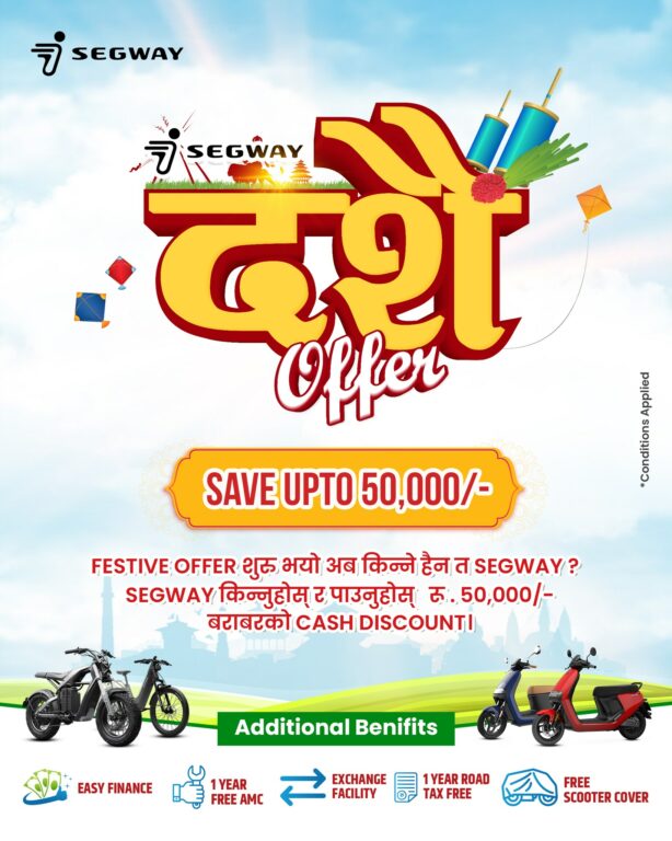 काठमाडौं । सेगवे नेपालले दशैंलाई लक्षित गर्दै आकर्षक अफर सार्वजनिक गरेको छ ।