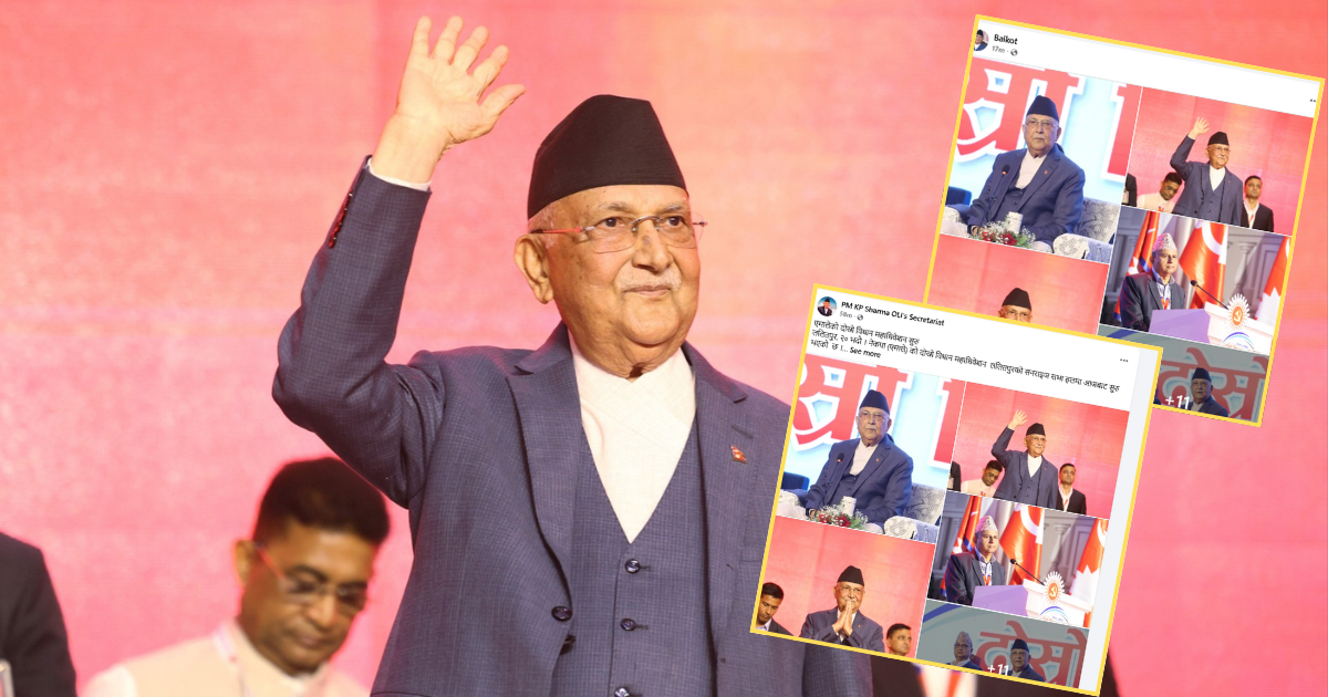 एमाले अध्यक्ष ओलीको गतिविधिहरु साझा गर्ने बालकोट नामक पेज र प्रधानमन्त्रीको सचिवालयबाट सामाजिक सञ्जालमा तस्बिरहरु सेयर गरिएका हुन् ।