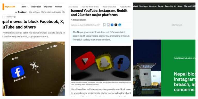 उता कतारी सञ्चारमाध्यम अलजजीराले पनि फेसबूक र एक्स लगायतका सामाजिक सञ्जाललाई नेपाल सरकारले बन्द गर्ने निर्णय लिएको समाचार प्रकाशन गरेको छ । त्यस समाचारमा डिजिटल राइट्स नेपालका अध्यक्ष भोलानाथ ढुंगानालाई उद्धृत गरिएको छ । सरकारले सूचनामाथि नियन्त्रण गर्ने उद्देश्यले यो निर्णय लिएको उनले बताएका छन् ।
