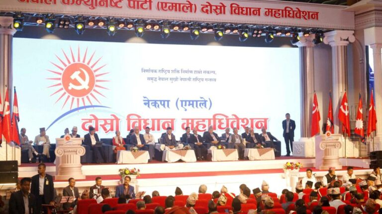 ललितपुर । नेपाल कम्युनिष्ट पार्टी (एमाले) को ललितपुर, गोदावरीस्थित सनराइज हलमा जारी दोस्रो विधान महाविधेशनमा प्रतिवेदनमाथिको छलफल जारी छ ।