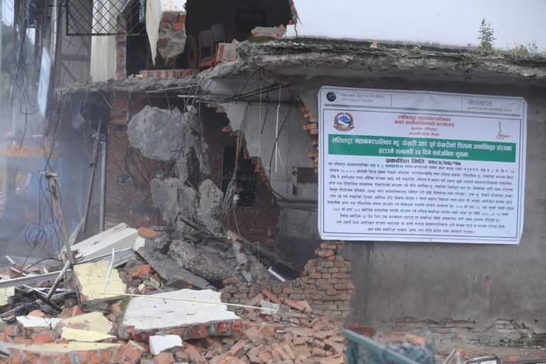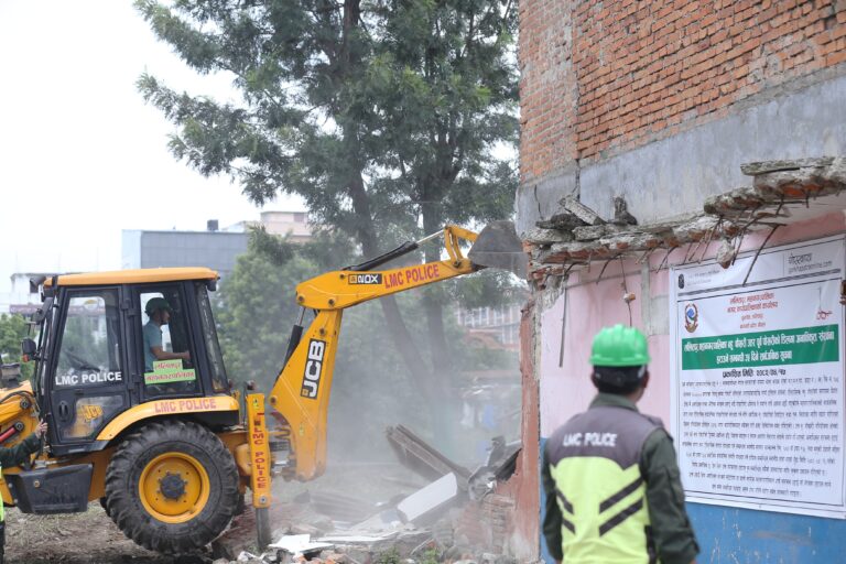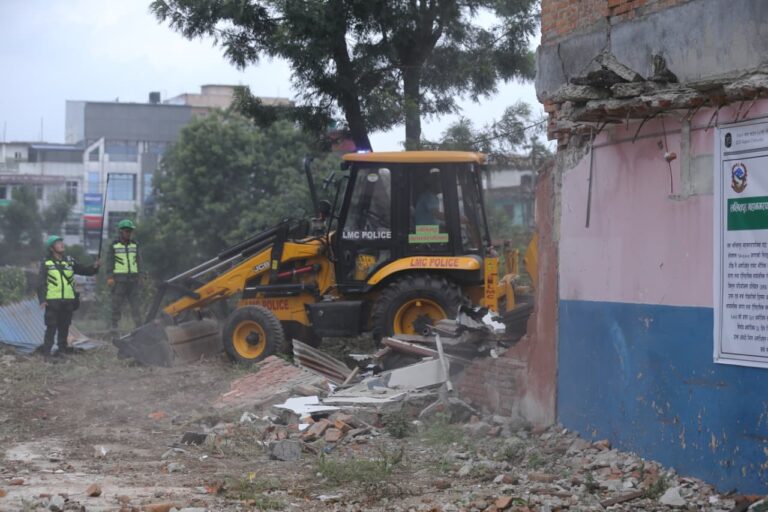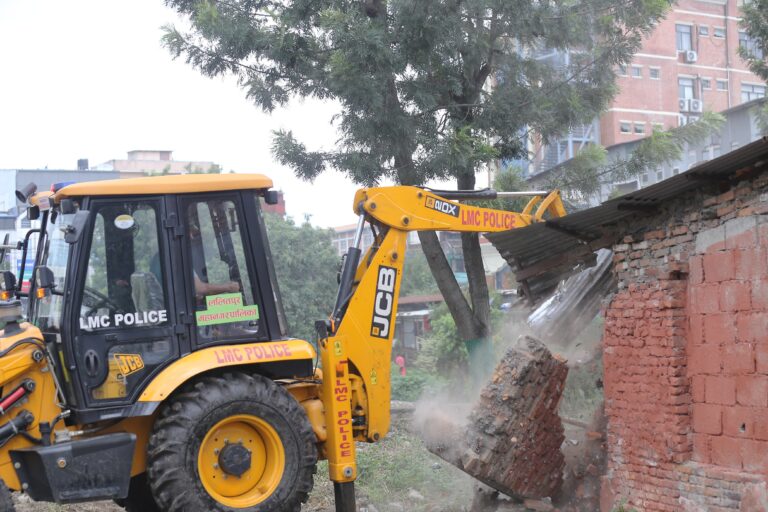 काठमाडौं । ललितपुर महानगरपालिकाले लगनखेल क्षेत्रमा सार्वजनिक जग्गा अतिक्रमण गरी निर्माण गरिएको संरचना भत्काएको छ ।