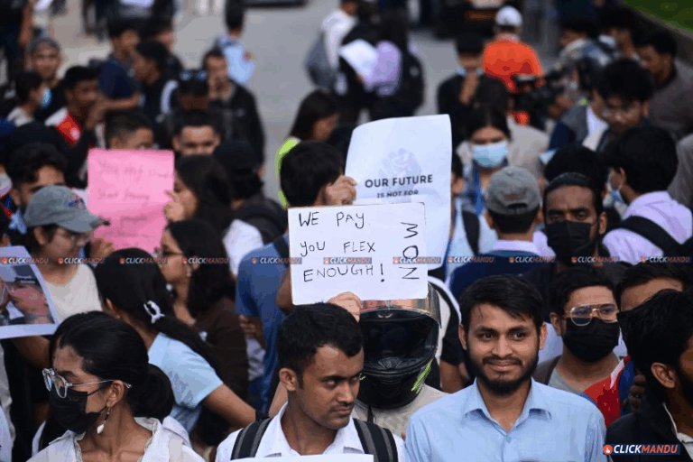 प्रदर्शनकारीहरूले हातमा विभिन्न नारा अंकित प्लेकार्ड बोकेका छन् । सामाजिक सञ्जालमार्फत लामो समयदेखि भ्रष्टाचार र अव्यवस्थाप्रति आक्रोश व्यक्त गर्दै आएका युवाहरू सञ्जाल नै बन्द गरिएपछि सडकमा उत्रिएका हुन् । सडक ढाकेर गरिएको प्रदर्शनका कारण सवारी आवागमन समेत प्रभावित भएको छ ।