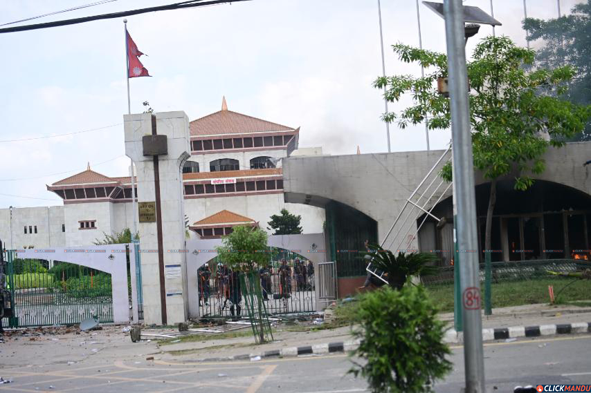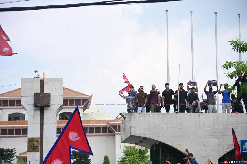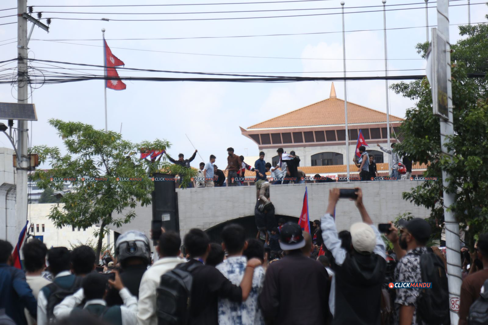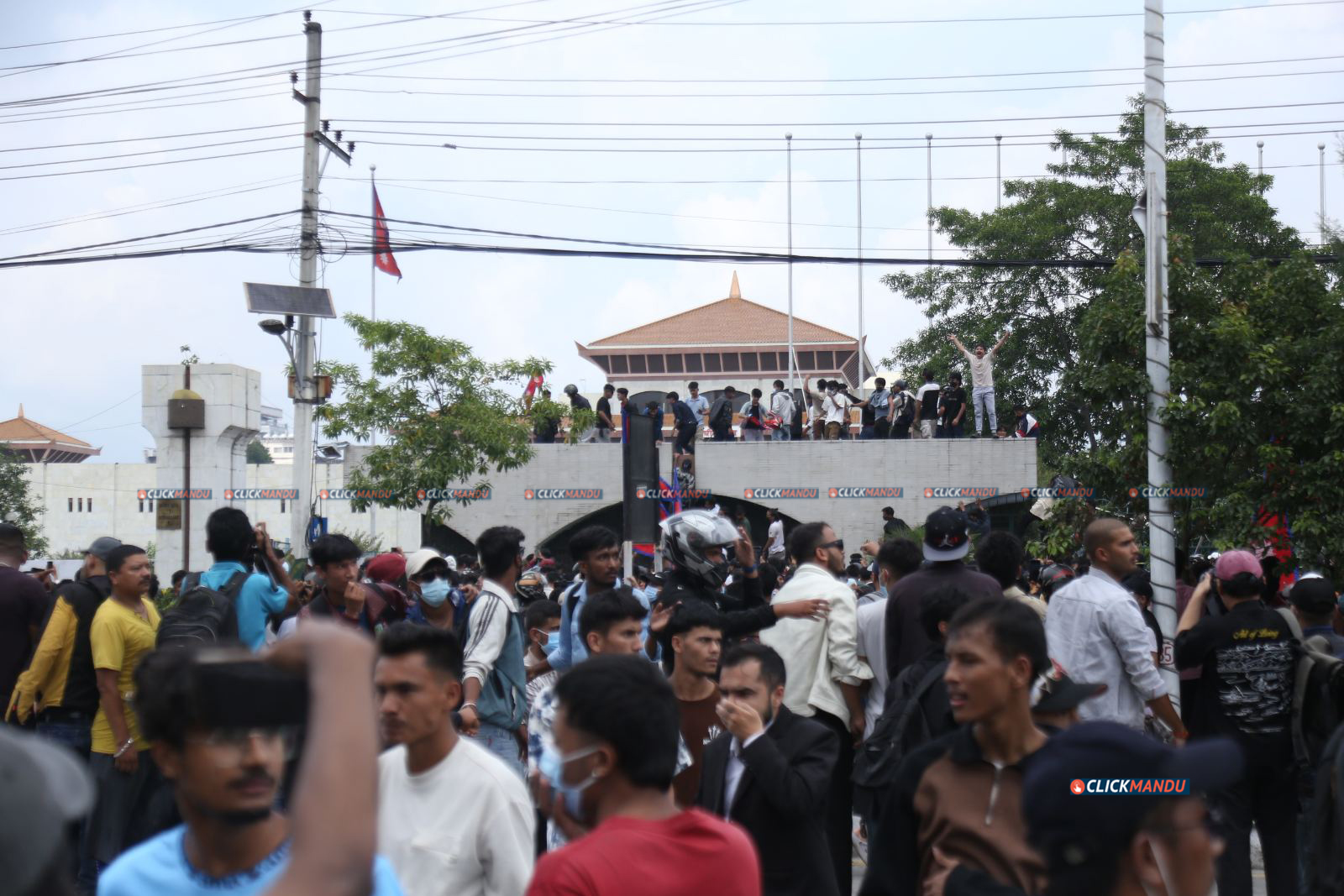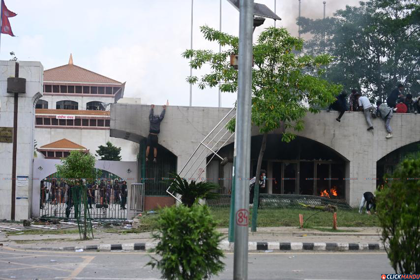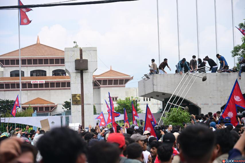 काठमाडौं । सरकारले सामाजिक सञ्जालमाथि लगाएको प्रतिबन्ध र बढ्दो भ्रष्टाचारविरुद्ध जेनजीको नेतृत्वमा भएको प्रदर्शन उग्र बनेको छ । सोमबार बिहानबाट माइतिघर र तीनकुनेतर्फबाट आएका जेनजी पुस्ताका प्रदर्शनकारीले संघीय संसद भवनलाई निसाना बनाए । प्रदर्शनकारी संघीय संसद् भवनभित्र प्रवेश गरे भने उनीहरुले गेटमा आगोसमेत लगाइदिएका छन् ।