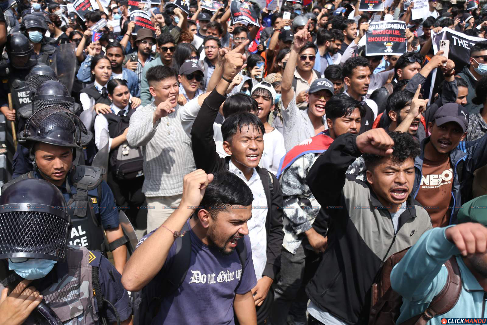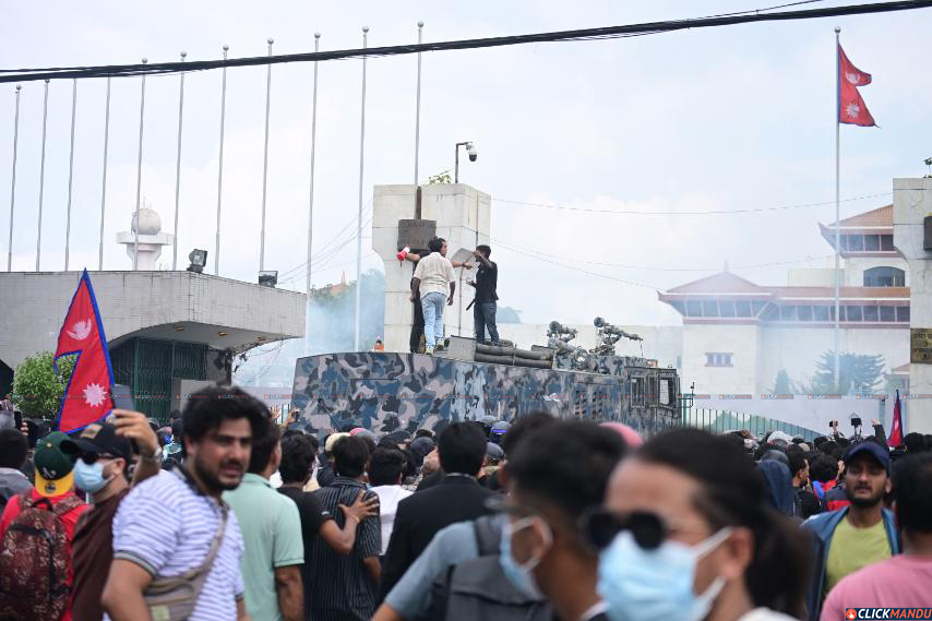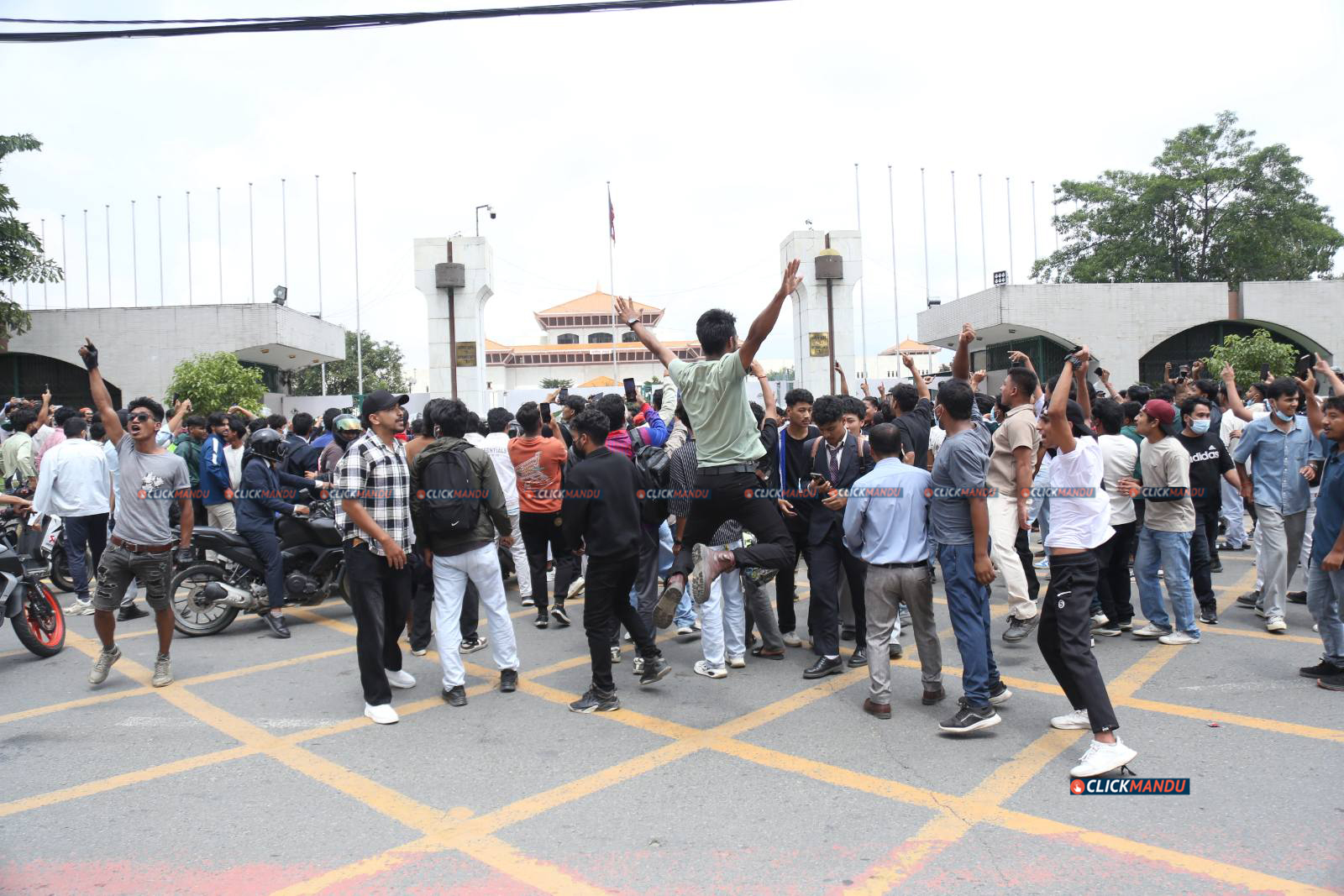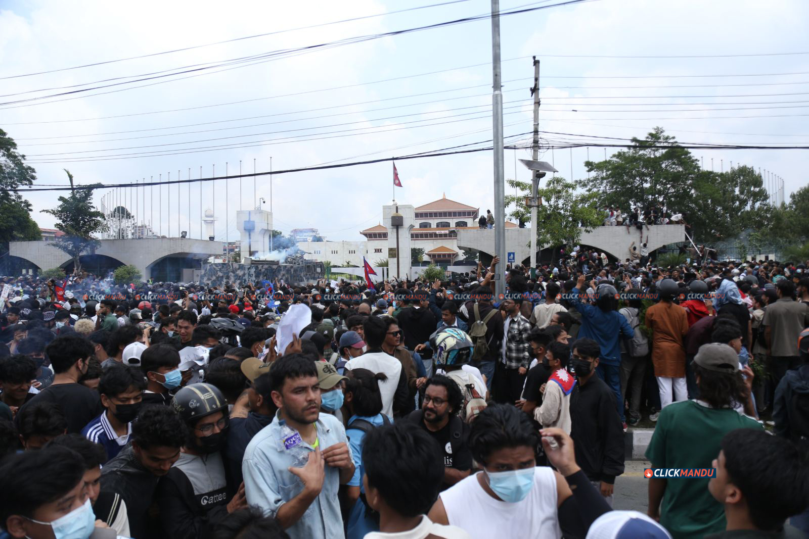 काठमाडौं । सरकारले सामाजिक सञ्जालमाथि लगाएको प्रतिबन्ध र बढ्दो भ्रष्टाचारविरुद्ध जेनजीको नेतृत्वमा भएको प्रदर्शन उग्र बनेको छ । सोमबार बिहानबाट माइतिघर र तीनकुनेतर्फबाट आएका जेनजी पुस्ताका प्रदर्शनकारीले संघीय संसद भवनलाई निसाना बनाए । प्रदर्शनकारी संघीय संसद् भवनभित्र प्रवेश गरे भने उनीहरुले गेटमा आगोसमेत लगाइदिएका छन् ।