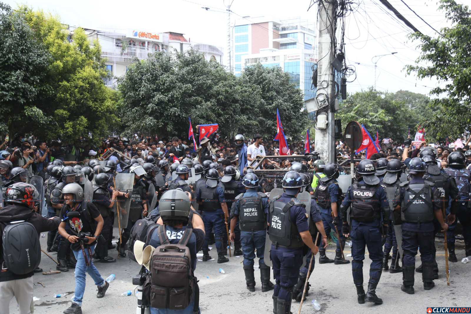प्रदर्शनकारीलाई नियन्त्रणमा लिन प्रहरीले अश्रुग्यास र रबरको गोलीसमेत चलाएको छ । अहिले पनि बानेश्वर क्षेत्रको अवस्था तनावग्रस्त रहेको छ ।