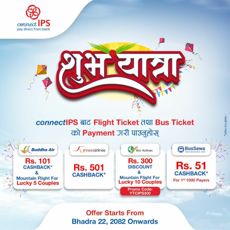 काठमाडौं । यस चाडपर्वको समयलाई लक्षित गर्दै फ्लाइट तथा बस टिकटको भुक्तानी कनेन्ट आईपीएसबाट गर्दा आकर्षक ‘शुभ लाभ अफर’ सार्वजनिक भएको छ ।
