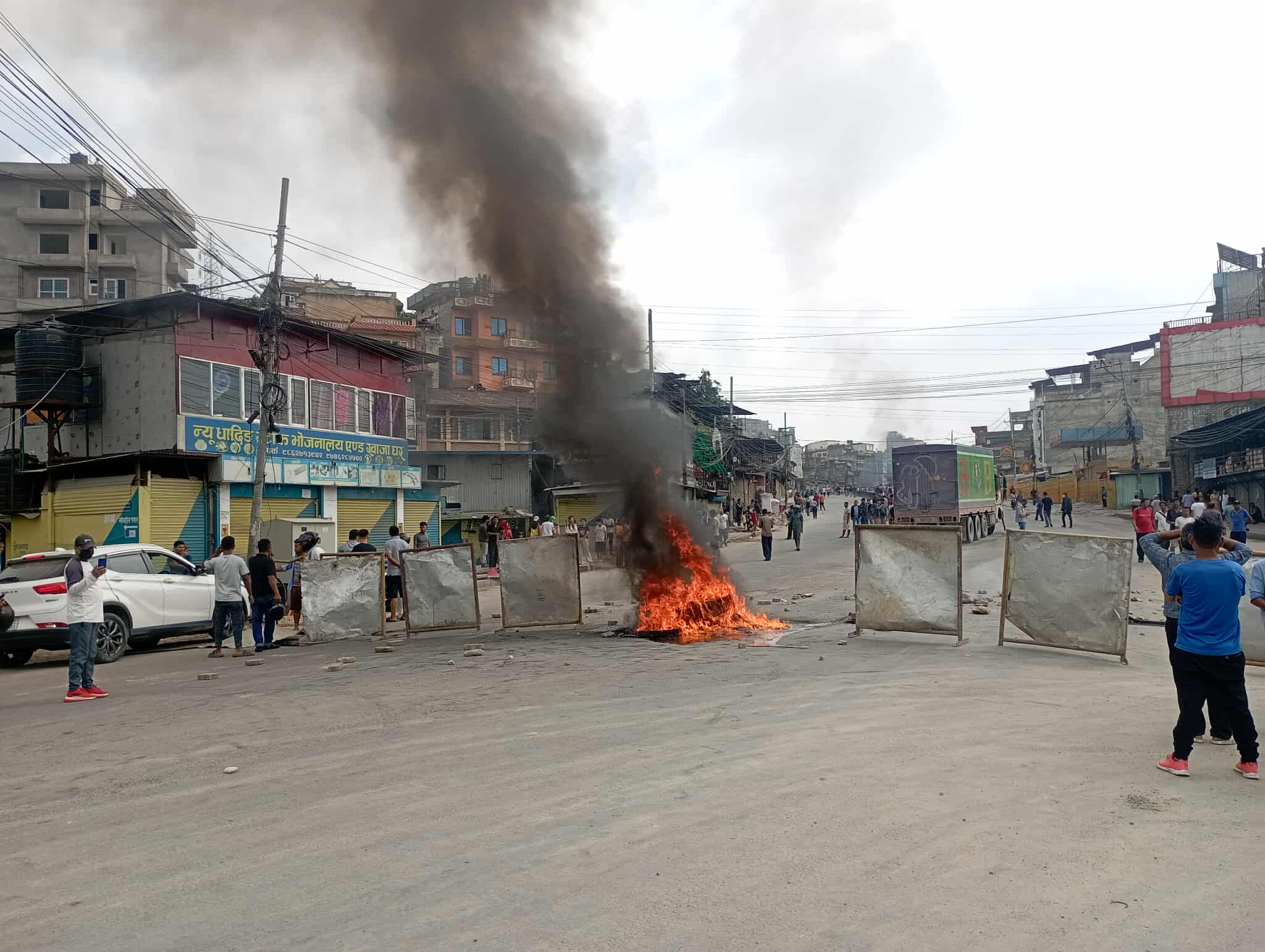 स्थिति नियन्त्रणमा लिन प्रहरीले लाठीचार्ज गरी भीडलाई तितरबितर पार्ने प्रयास गरेको छ । प्रदर्शनकारीले सडकमा टायर बालेर प्रदर्शन गरिरहेका छन् ।