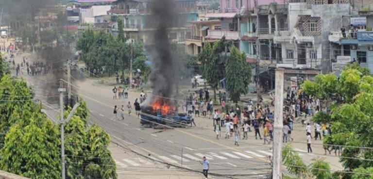 प्रदर्शनकारीहरुले प्रहरीको गाडीमा आगो लगाइदिएका छन् । स्थितिलाई नियन्त्रणमा लिन प्रहरीले कयौं राउण्ड हवाइ फायर गरेको छ ।