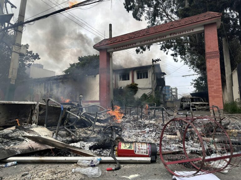 काठमाडौं । प्रदर्शनकारीले नयाँ बानेश्वर स्थित यातायात व्यवस्था विमागमा आगजनी गरेका छन् । इम्बोस्ड नम्बरप्लेट लागू गर्ने निर्णयपछि सर्वसाधारण विभागसँग क्रुद्ध थिए ।