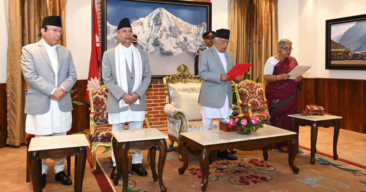 राष्ट्रपति कार्यालय शीतल निवासमा आयोजित कार्यक्रममा राष्ट्रपति रामचन्द्र पौडेलले नवनियुक्त प्रधानमन्त्री सुशीला कार्कीलाई पद तथा गोपनीयताको सपथ गराएका हुन् ।
