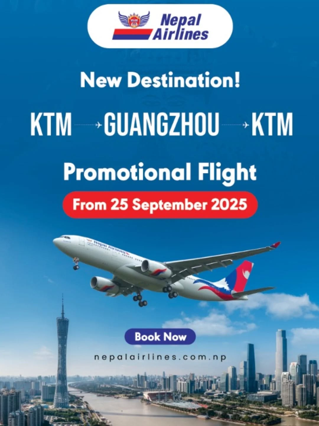 काठमाडौं । राष्ट्रिय ध्वजाबाहक नेपाल वायुसेवा निगमले पहिलोपटक काठमाडौंबाट सिधै चीनको ग्वाङ्जाओमा उडान गर्ने भएको छ । काठमाडौं –ग्वाङ्जाओ–काठमाडौं उडान सातामा तीन वटा गर्ने गरी तालिका बनाएको वायुसेवा निगमका प्रवक्ता मनोज साहले जानकारी दिए ।