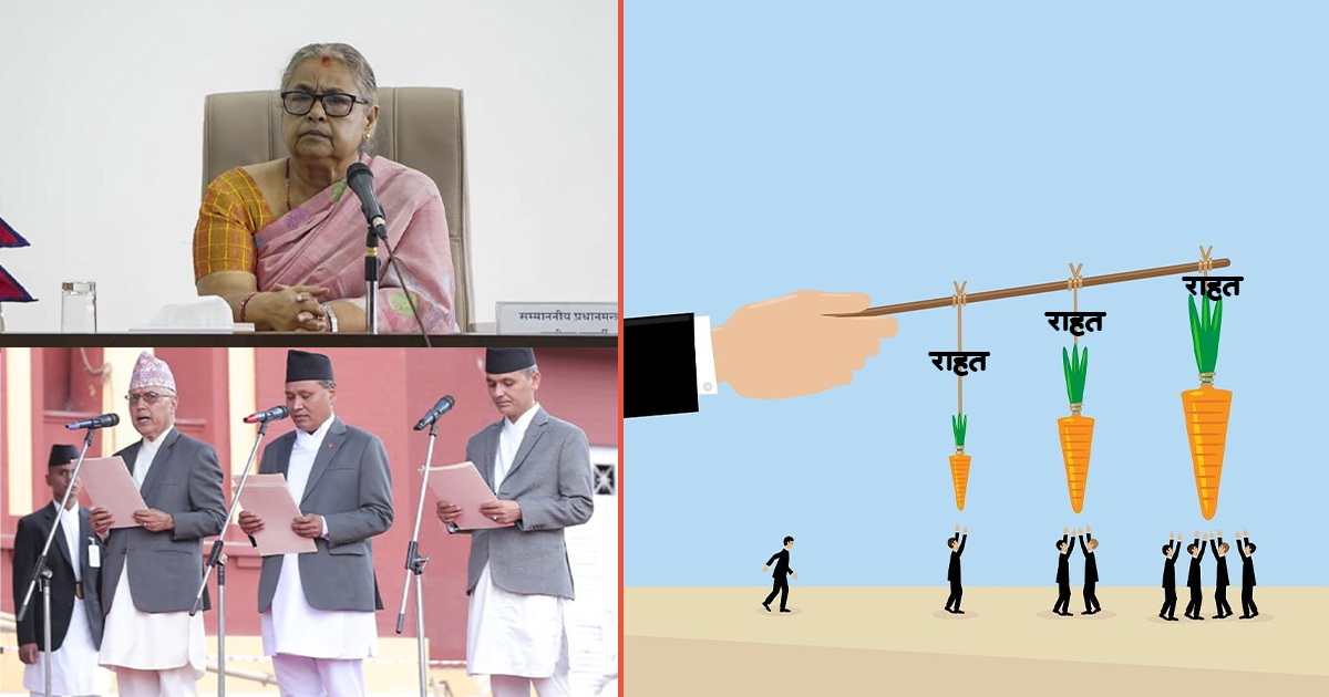 अर्थमन्त्री र गभर्नर डा. विश्वनाथ पौडेलको समन्वयनमा जेनजी प्रदर्शनबाट ठूलो क्षति भोगेका व्यवसायीको पुनरुत्थान र व्यावसायिक मनोबल सुधार गर्न तत्काल राहत प्याकेज घोषणा गरी कार्यदल बनेको थियो । अर्थ मन्त्रालयका ३ सहसचिवसँगै राष्ट्र बैंकका ३ जना कार्यकारी निर्देशक र नेपाल बिमा प्राधिकरणका कार्यकारी निर्देशक रहेको कार्यदल बनेको थियो । उक्त कार्यदलको सिफारिसको आधारम सकारले व्यवसायिलाई दिने राहत घोषणा गरेको हो । आइतबारको मन्त्रिपरिद् बैठकमा अर्थमन्त्री रामेश्वर खनालको प्रस्तवमा उक्त निर्णय भएको हो ।