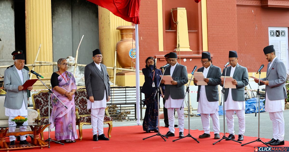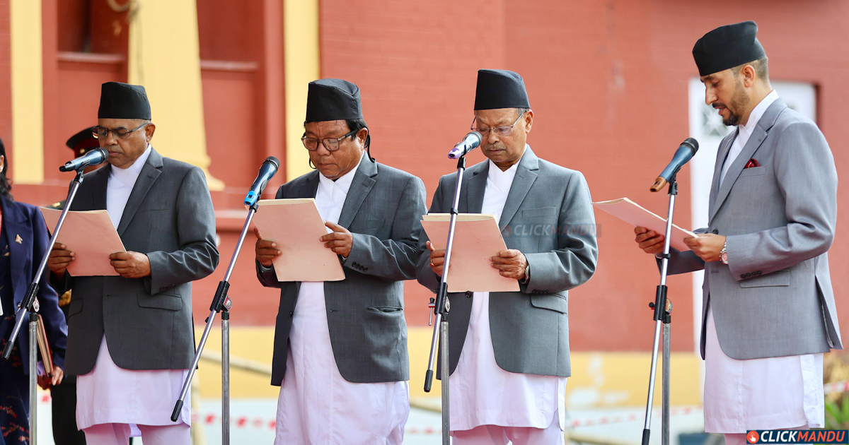 काठमाडौं । अन्तरिम सरकारमा थप चार जना मन्त्रीले पद तथा गोपनीयताको सपथ लिएका छन् ।