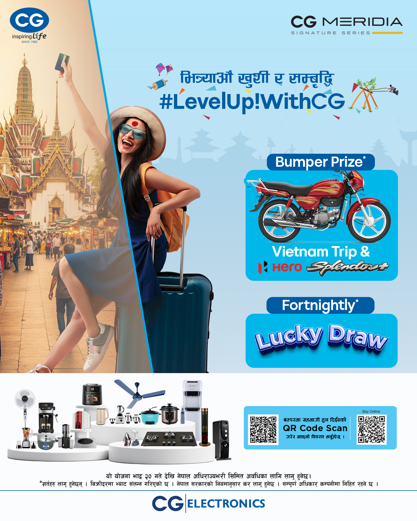 यस योजनाले गुणस्तरीय उत्पादन खरिद गर्ने ग्राहकहरूलाई केवल आधुनिक जीवनशैली प्रदान गर्दैन, बरु तिनलाई आकर्षक पुरस्कार जित्ने अवसरसमेत दिन्छ । “भित्र्याऔँ खुशी र समृद्धि #LevelUpWithसीजी” भन्ने मूल सन्देशसँग यो योजना सुरु गरिएको कम्पनीले जनाएको छ ।