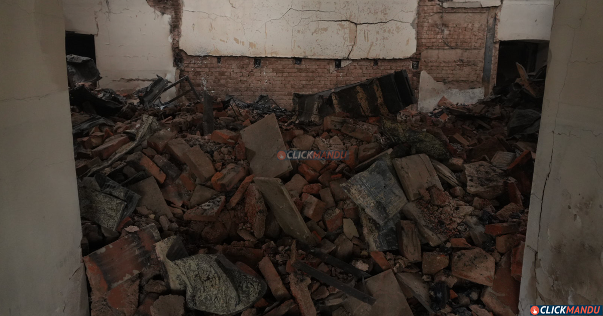 जलेको भवनभित्र प्रवेश गर्दा जलेर क्षतिग्रस्त भएको छतको मोटा मोटा काठको फलेक र पर्खाल झर्न सक्ने जोखिम पनि त्यतिकै छ । यसले गर्दा पनि क्षतिको विवरण संकलन गर्न कठिनाई भएको विभागको अधिकारीहरूले औंल्याएका छन् ।