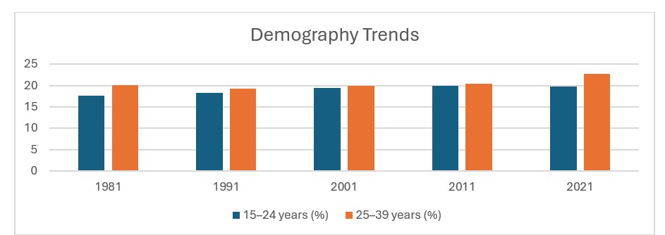सन् २०२१ को जनगणनाअनुसार नेपालको करिब ५६% जनसंख्या ३० वर्षभन्दा कम उमेरका छन् । जसमा १ करोड २४ लाखलाई १६–४० वर्षका युवाको रूपमा वर्गीकृत गरिएको छ । कुल जनसंख्याको झण्डै एक चौथाइ किशोर (१०–१९ वर्ष) र करिब एक पाँचौं युवा (१५–२४ वर्ष) छन् । डिजिटल प्रविधिमा पारंगत यो पुस्ताले असन्तोषलाई छिट्टै परिचालन गर्न र सामाजिक सञ्जालमार्फत बढाउन सक्छ ।