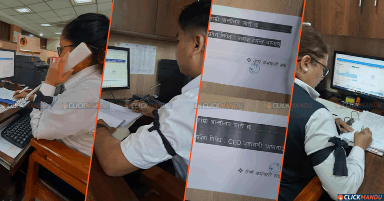 हातमा कालोपट्टी बाँधेर कार्यालयमा नेप्सेका कर्मचारी, अध्यक्ष र सीईओलाई प्रवेश निषेध