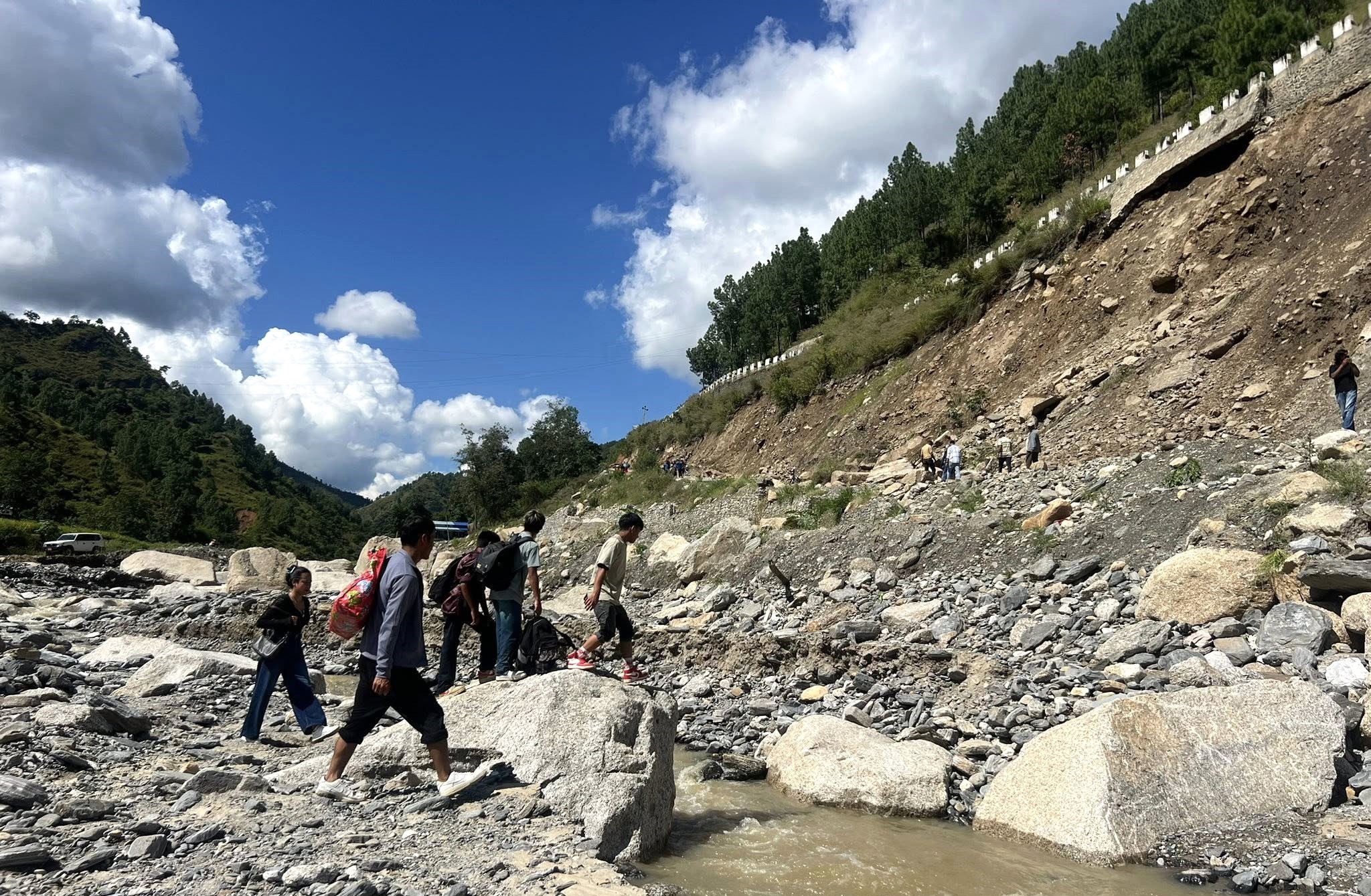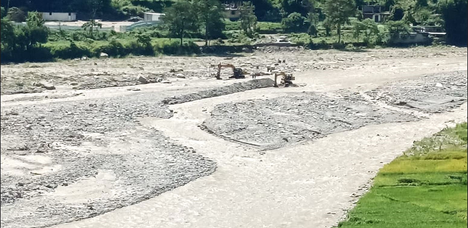 बाटो सुचारु गर्न बगरमा अस्थायी बाटो बनाइँदै
