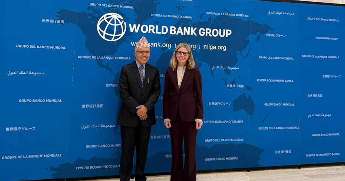 काठमाडौं । अर्थमन्त्री रामेश्वर प्रसाद खनालले विश्व बैंक समूहका प्रबन्ध निर्देशक आन्ना बेजर्डे र अन्तर्राष्ट्रिय मुद्रा कोषको उपप्रबन्ध निर्देशक बो लीसँग छुट्टा छुट्टै भेटवार्ता गरेका छन् ।