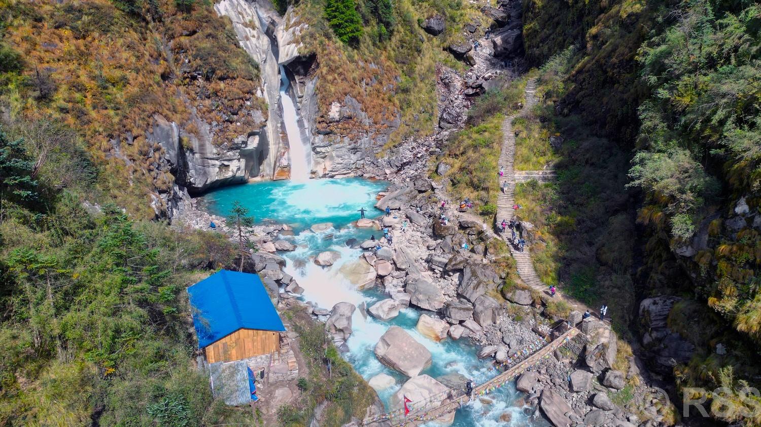 नारच्याङ्का बासिन्दाले त्यहाँ अस्थायी संरचना बनाएर होटल सञ्चालन गरेका छन् । झरनाको फेदीमा रहेको पोखरीमुनि काठको झोलुङ्गे पुल छ । पुलको पारि अर्को सानो झरना छ । दायाँ र बायाँ झरना हेर्दै पुल तर्न सकिन्छ ।