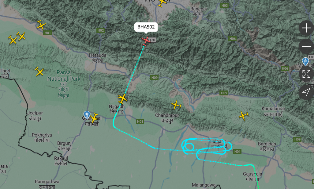 चीनको ग्वान्झाउबाट आएको विमान निजगढको आकाशमा फन्का मारिरहेको छ । जनकपुरबाट काठमाडौं आएको विमान लालबन्दीमा फन्का मारेर अहिले विमानस्थलतर्फ गएको छ । पोखराबाट काठमाडौं आइरहेको विमान पनि भरतपुरको आकाशमा फन्को मारिरहेको छ ।