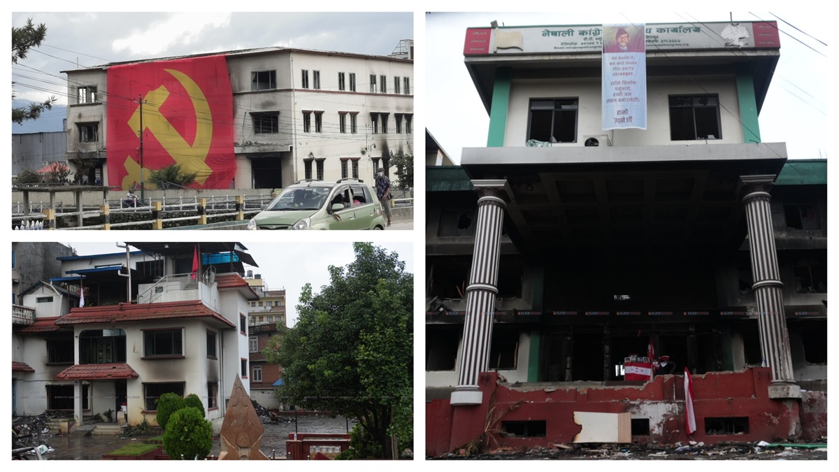 काठमाडौं । भदौ २३ र २४ गतेको जेनजी आन्दोलनका क्रममा राजनीतिक दलका पार्टी कार्यालयहरू आन्दोलनकारीको मुख्य निशानामा परे ।