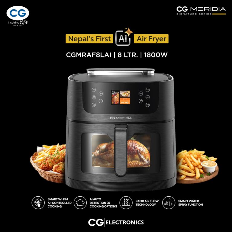काठमाडौं । सीजीले आफ्नो घरायसी उपकरण ब्रान्ड अन्तर्गत नेपालकै पहिलो एआई सञ्चालित एयर फ्रायर औपचारिक रूपमा सार्वजनिक गरेको छ । आधुनिक नेपाली भान्साको सुविधा , समय बचत र र स्वास्थ्यलाई ध्यानमा राख्दै गरिएको सीजी मेरिडिया स्मार्ट एयर फ्रायर मोडेल CGMRAF8Lएआई ले घरेलु पकाइ प्रविधिलाई नयाँ युगमा प्रवेश गराएको छ ।