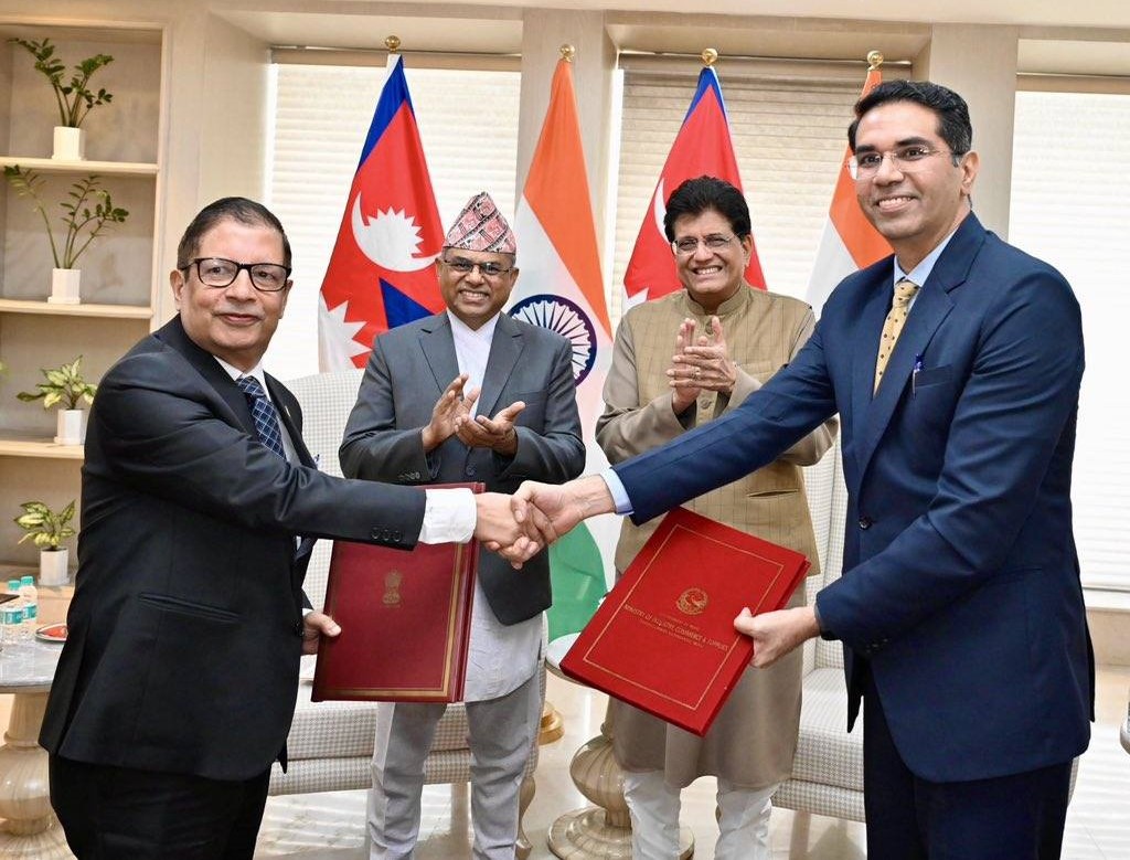 भारतका वाणिज्य तथा उद्योग मन्त्री पियुष गोयल र नेपालका उद्योग, वाणिज्य तथा आपूर्तिमन्त्री अनिलकुमार सिन्हाबीच नयाँ दिल्लीमा द्विपक्षीय बैठक सम्पन्न हुँदै उक्त सम्झौतापत्रमा हस्ताक्षर भएको हो।