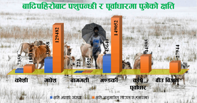 ‘अहिले बालिनाली वा पशुपन्छीसम्बन्धीे बास्तविक र बैज्ञानिक रुपमा तथ्याँक आउँदैन, संघीय संरचनामा मुलुक गएपछि अहिले जिल्लातहदेखि संघीय मन्त्रालयसम्मको सूचना प्रणाली भत्किएको छ,’ मन्त्रालयका ति अर्थविद्ले भने,‘जिल्लाबाट सोझै केन्द्रसम्म बास्तविक तथ्याँक आउँदैन । प्रदेशले जस्तो पठाउँछ, त्यसमै विश्वास गरेर हामीले पनि फोरकास्ट गर्नुपर्ने बाध्यता छ । प्रदेशहरुले पनि अनुमानको भरमा यस्तो तथ्याँक पठाउने गरेका छन् । यसले गर्दा क्षतिको आँकडा थपिन सक्छ ।’