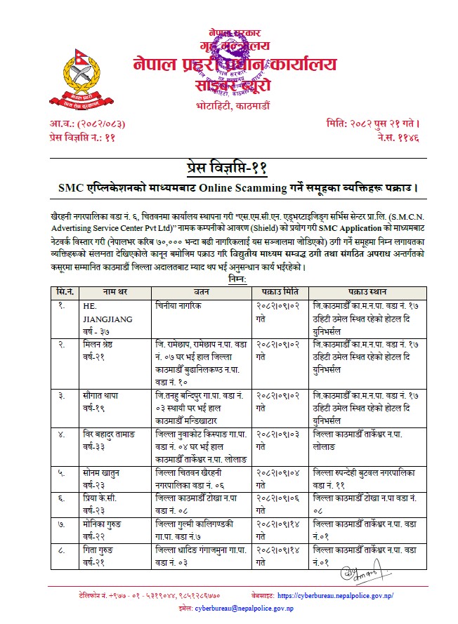 काठमाडौं । सामाजिक सञ्जालको बढ्दो प्रयोगसँगै आर्थिक अपराधका घटनाहरु पनि दिनानूदिन बढिरहेका छन् । विभिन्न एप र सामाजिक सञ्जालको स्क्यामबाट करोडौं ठगिएको भन्दै प्रहरीकहाँ दैनिकजसो उजुरी पर्ने गरेको छ । उजुरी नगर्नेहरुको संख्या पनि निकै ठूलो छ । कसरी ठगी भइरहेको छ र जोगिन के गर्ने भनेर यो समाचार तयार पारिएको हो ।
