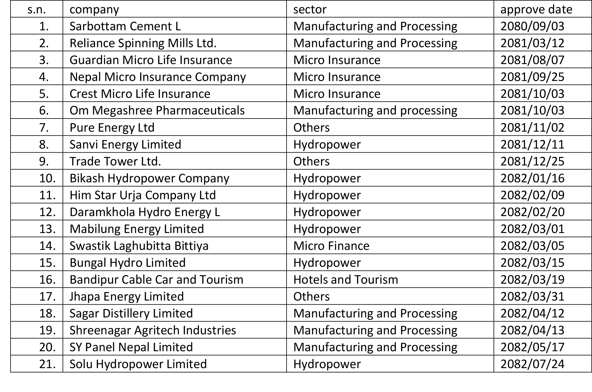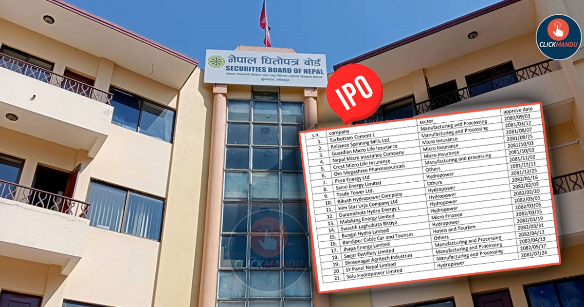 पछिल्लो २ वर्षमा आईपीओ निष्कासन अनुमति पाएका २१ कम्पनी
