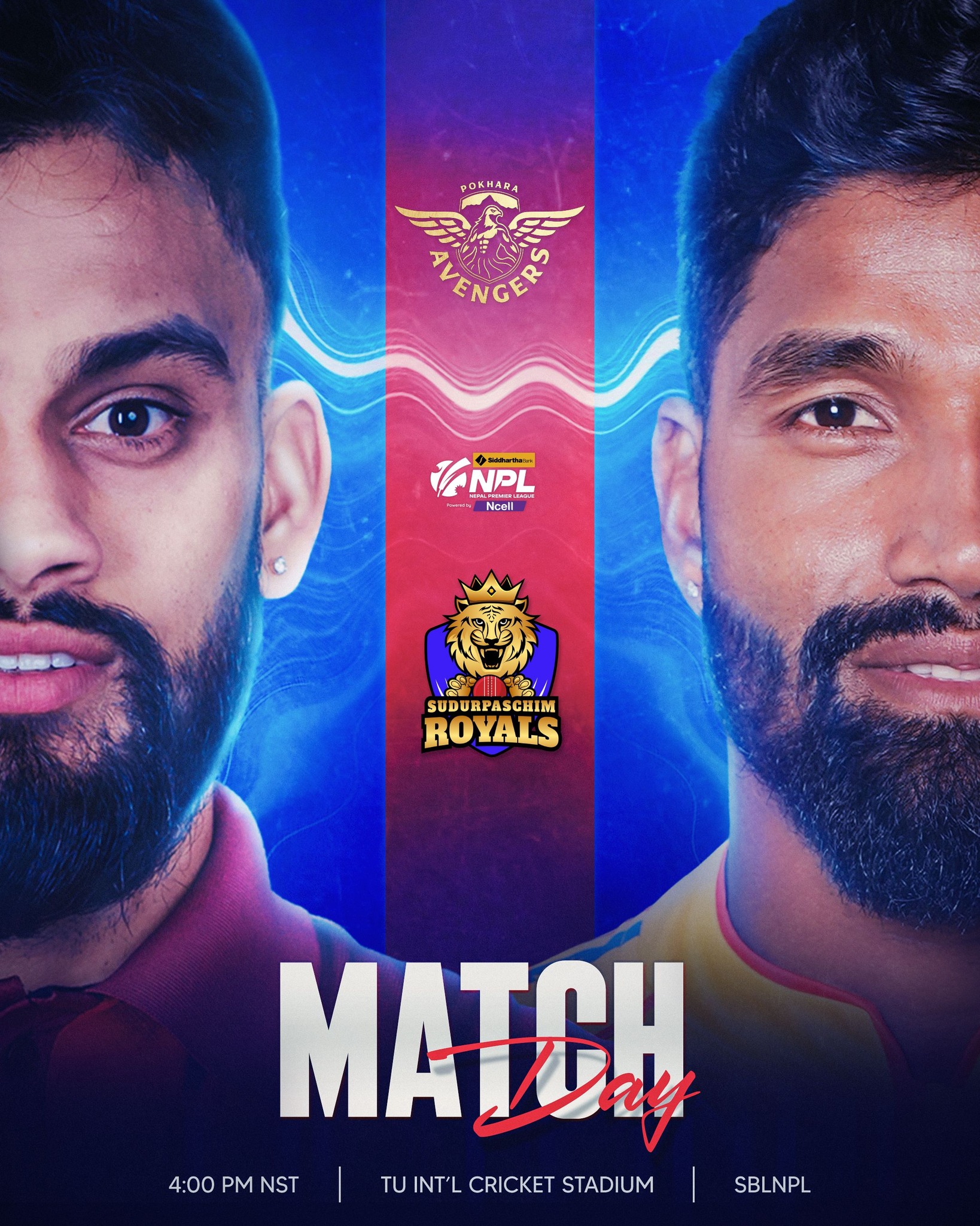 काठमाडौँ, ५ मङ्सिरः नेपाल प्रिमियर लिग (एनपिएल)अन्तर्गत आज यहाँस्थित त्रिभुवन विश्वविद्यालयको अन्तरराष्ट्रिय क्रिकेट मैदानमा पोखरा एभेञ्जर्स र सुदूरपश्चिम रोयल्स आमनेसामने हुँदैछन् ।