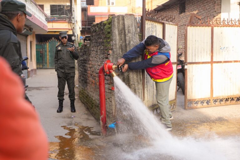 काठमाडौं । काठमाडौं महानगरपालिकाको विपद व्यवस्थापन विभागले पञ्चकुमारी मार्ग जनगोरेटोमा विछ्याइएको ड्राइराइजर प्रणालीको सफल परीक्षण गरेको छ । वडा नम्बर ३० मा पर्छ ।
