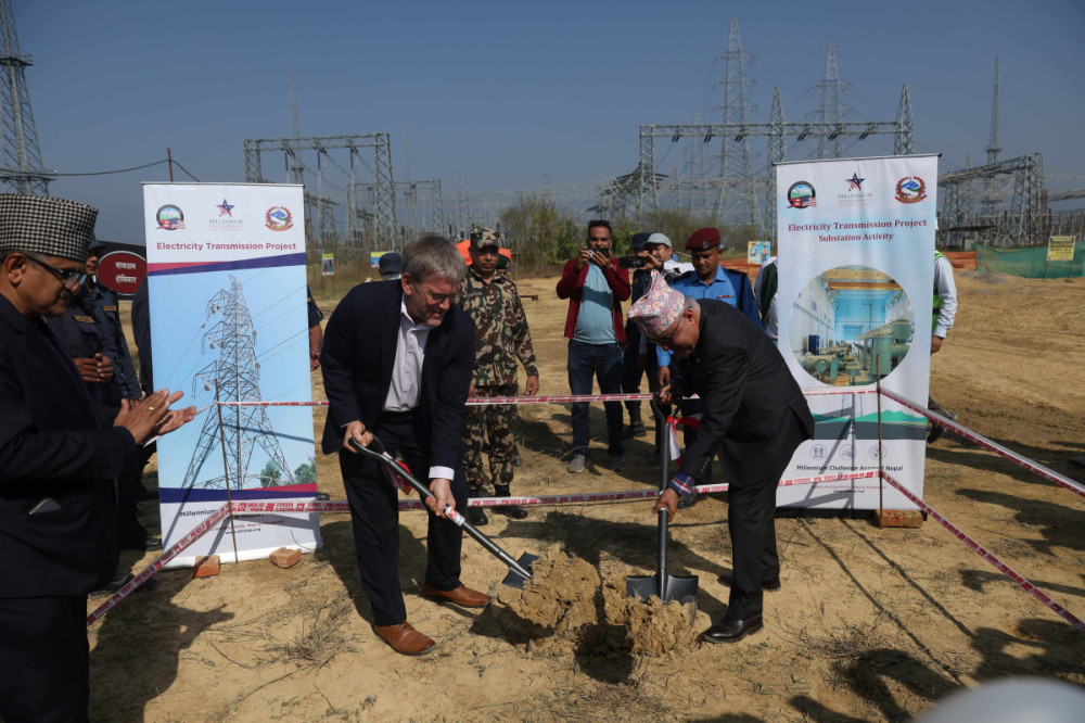 अर्थमन्त्री रामेश्वरप्रसाद खनाल र नेपालका लागि संयुक्त राज्य अमेरिकाका राजदूत डिनआर थम्प्सनले संयुक्त रूपमा प्रसारण लाइन निर्माणको शुभारम्भ गरेका हुन् ।