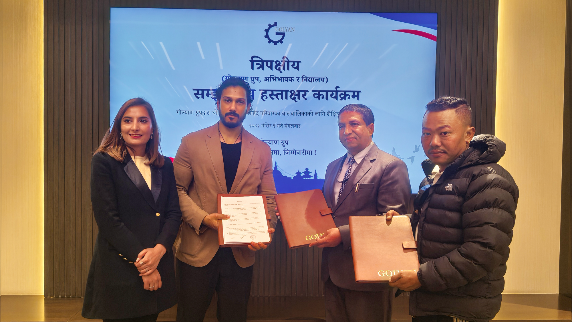 काठमाडौं । जेन–जी आन्दोलनका सहिदका बालबालिकालाई अध्ययन गराउन गोल्याण ग्रुप, विद्यालय र अभिभावबीच त्रिपक्षीय सम्झौता भएको छ । गोल्याण ग्रुप ले गत असोज २४ मा गरेको घोषणालाई कार्यान्वयन गर्ने क्रममा त्रिपक्षीय सम्झौता गरेको जनाएको छ ।