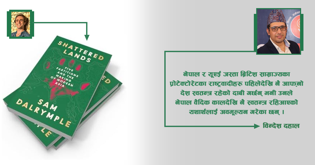 यस्तो विभाजन कसरी सम्भव भयो ? बीसौं शताब्दीमा त्यसका लागि कस्ता वातावरणहरू निर्माण भएका थिए ? यिनै प्रश्नहरूको वरिपरि रहेर साम डालरिम्पलले केही महिनाअघि पुस्तक प्रकाशन गरेका छन् । त्यसको शीर्षक छ : ‘श्याटर्ड ल्यान्ड्स फाइभ पार्टिशन्स एन्ड द मेकिङ अफ मोडर्न एसिया’ ।